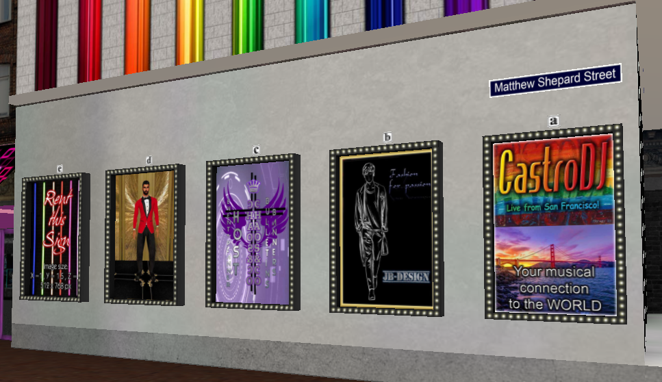 | Century Full Location: On a wall of Century Theatre Size: 1024 H by 1024 W Price: 150 Rays / 7 days 500 Rays / 30 days ![]() | Biz Corner Location: The corner between Bareback Bordello and the main courtyard Size:1024 H by 1024 W Price: 150 Rays / 7 days 500 Rays / 30 days ![]() |